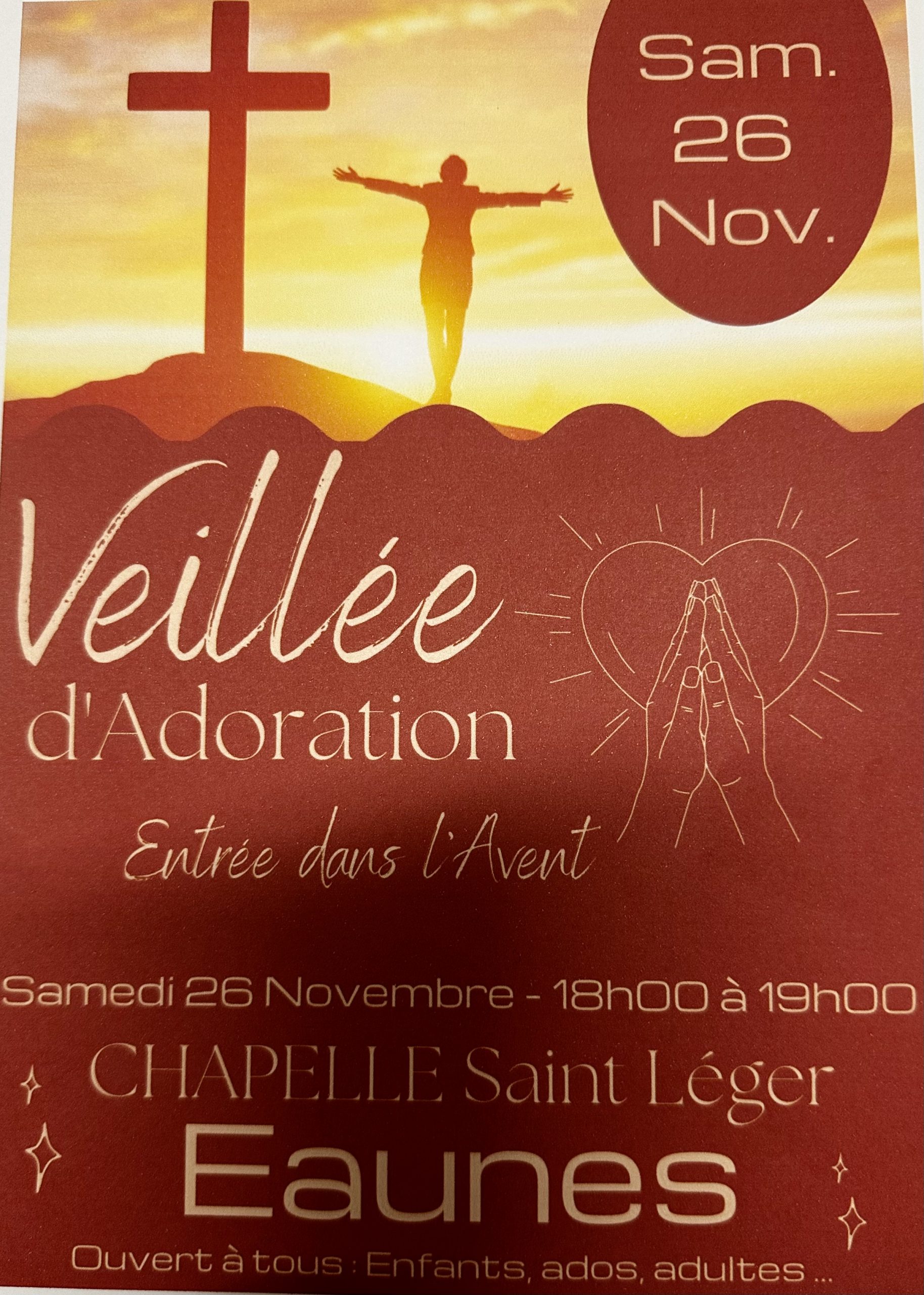 Ce samedi 26 novembre, une veillée d’adoration pour entrer dans le temps de l’Avent est organisée dans l’église d’Eaunes. Vous êtes tous invités.
